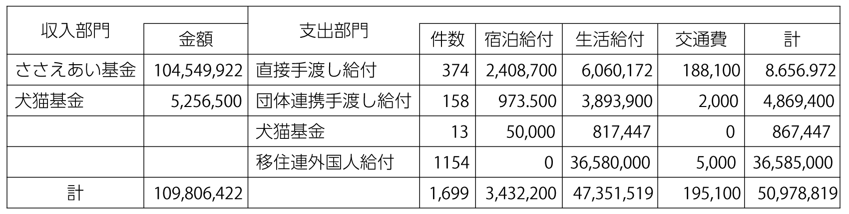 表 新型コロナウイルス災害緊急ささえあい基金給付進捗