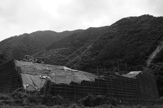 納得できないHさんは、「下流域をはじめ住民の声に耳を傾けることを求めます」と題した署名活動を展開。ところが、387筆の署名を、村議会は多数決で「受け取らない」と決議。この結果、本山では今、ブルドーザーなど重機が残土処分場をつくるための伐採を行っています。