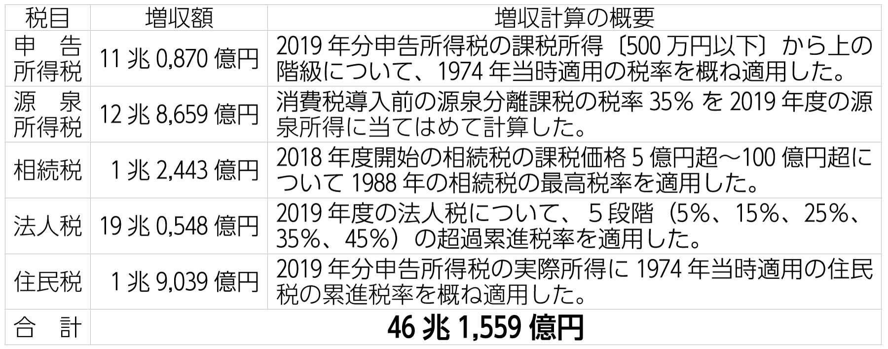 所得課税の増収額合計