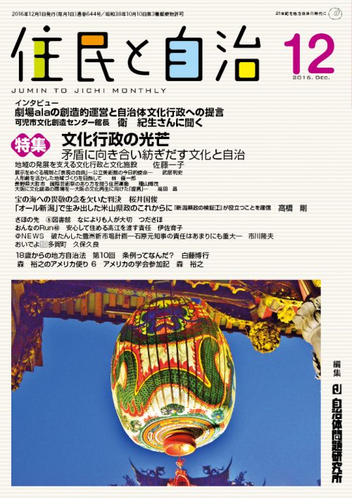 文化行政の課題を整理しながら、「地域に根ざす文化」の深まりと広がりは、住民自治の基盤となることを論じます。