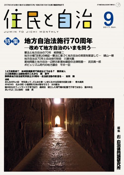 2017年は、平和、民主主義、人権を保障する日本国憲法とそれをより具体化すべく制定された地方自治法施行70周年にあたり、地方自治の重要性を歴史にそってとらえ直し、論考からそのいまを問います。