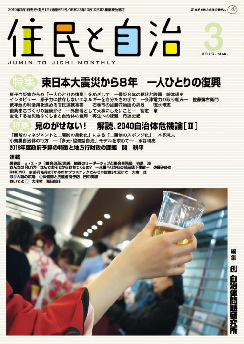 特集:東日本大震災から8年 一人ひとりの復興 特集:見のがせない! 解読、2040自治体危機論[Ⅱ] |