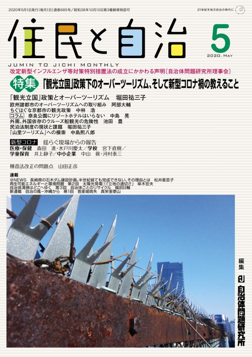 アベノミクスの成長戦略の一つ、2006年に成立した観光立国推進基本法からはじまった「観光立国」政策で、国外とくにアジアからの観光客はうなぎのぼりに増加してきました。しかし近年、景観規制の緩和でまちが壊れたり、市民生活に支障が出るなど、負の側面が浮上しています。本特集は、オーバーツーリズム(観光客過剰)問題を概観し、新型コロナウイルスで一気に冷え込んだ、インバウンド頼みのわが国の観光のあり方を見つめ直します。